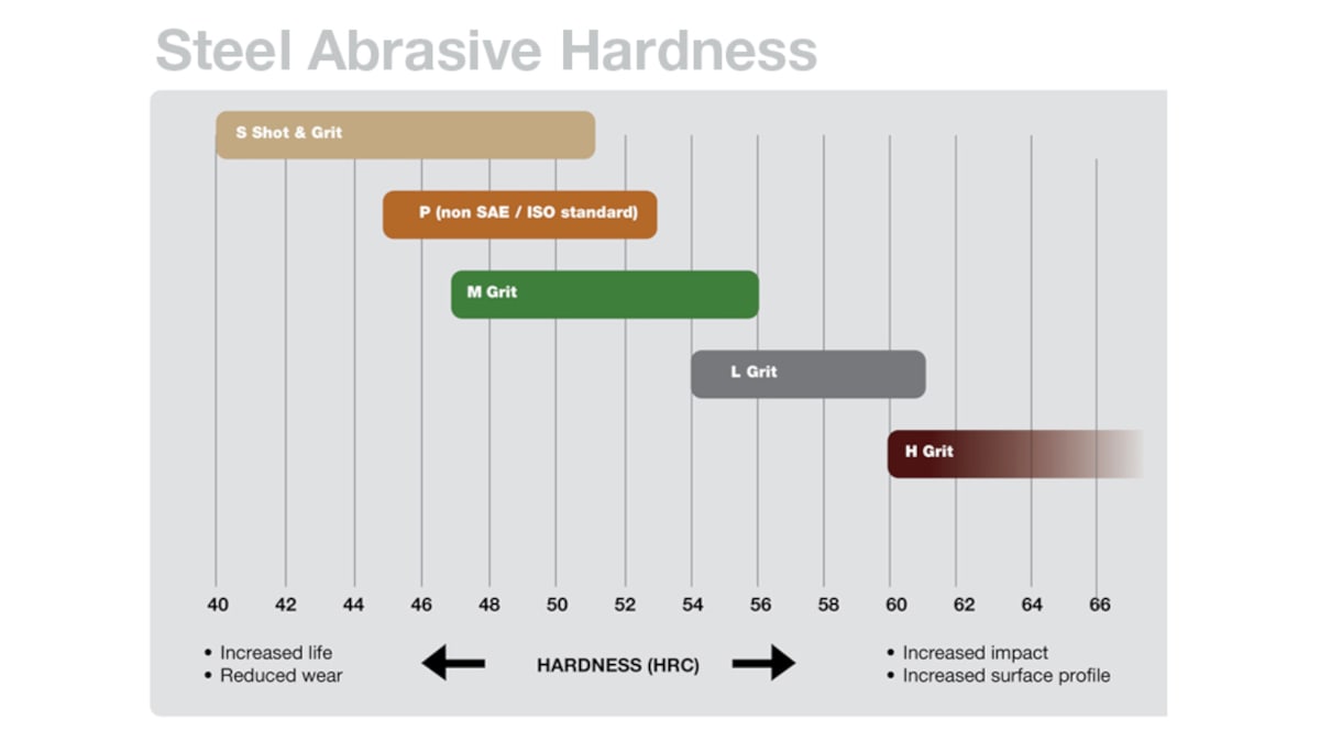 Hardness: harder abrasives produce deeper profiles but have a shorter lifespan. Softer media lasts longer and is gentler on equipment but may underperform in aggressive cleaning. Inconsistent hardness affects both finish quality and equipment wear.