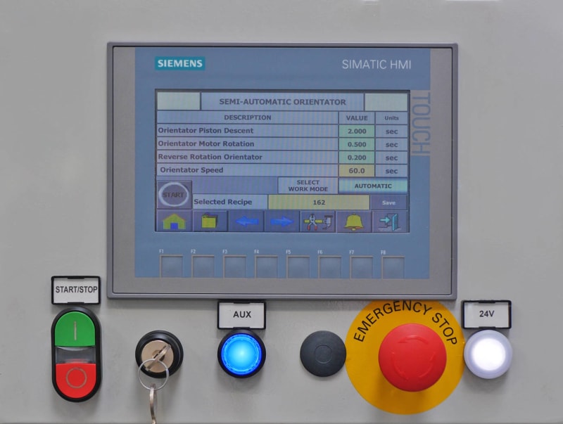 Il sistema è gestito da un controllo PLC che coordina in maniera precisa tutte le operazioni meccaniche e idrauliche. Tramite un’interfaccia touch screen intuitiva, è possibile configurare, salvare e richiamare parametri e impostazioni personalizzati per ogni tipo di molla o lotto di produzione, ottimizzando i tempi di setup e migliorando l'efficienza.