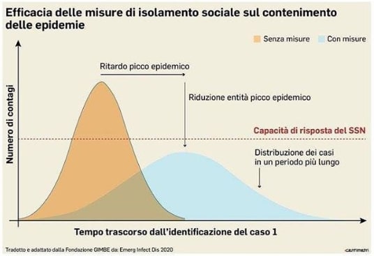 È su queste basi che si fonda la linea dura intrapresa dal nostro governo, agli occhi di taluni troppo coercitiva. Considerando la facilità delle modalità di trasmissione della malattia, è evidente che le comuni strategie di prevenzione non possono essere sufficienti. Dovremmo allora fare tutti uno sforzo per appiattire la curva, rallentando il più possibile l’inesorabile avanzata del virus.